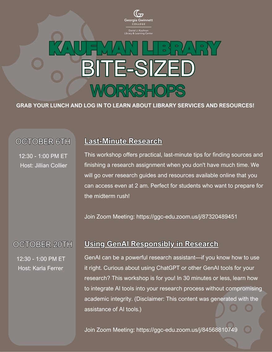 This workshop offers practical, last-minute tips for finding sources and finishing a research assignment when you don't have much time. We will go over research guides and resources available online that you can access even at 2 am. Perfect for students who want to prepare for the midterm rush.