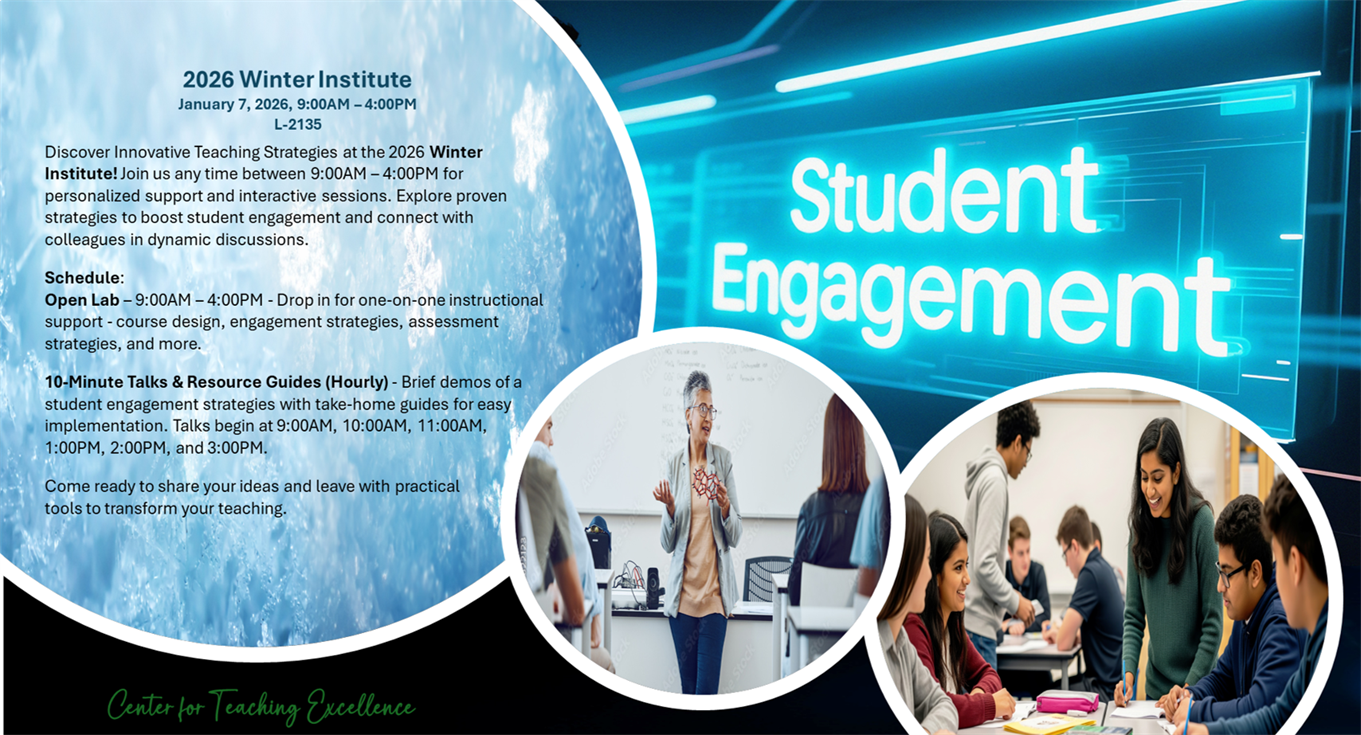 We are excited to share that the Center for Teaching Excellence (CTE) will be hosting the 2026 Winter Institute on Jan. 7, 2026!