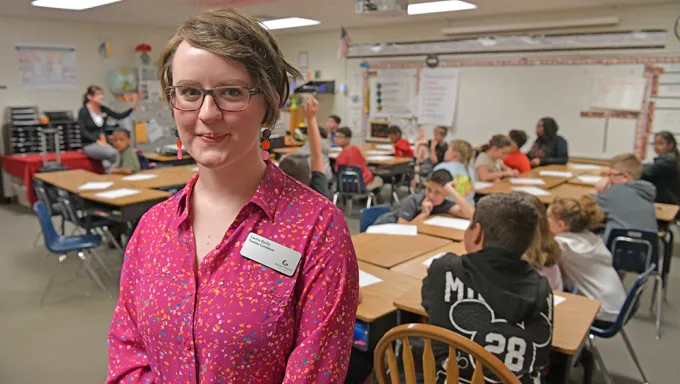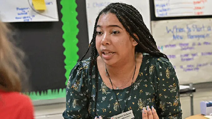 Female student teacher in the classroom